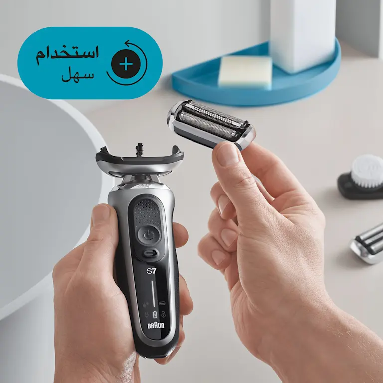 ماكينة حلاقة المجموعة 7 71-S1000s للحلاقة الجافة ومع الماء مع علبة للسفر باللون الفضي.