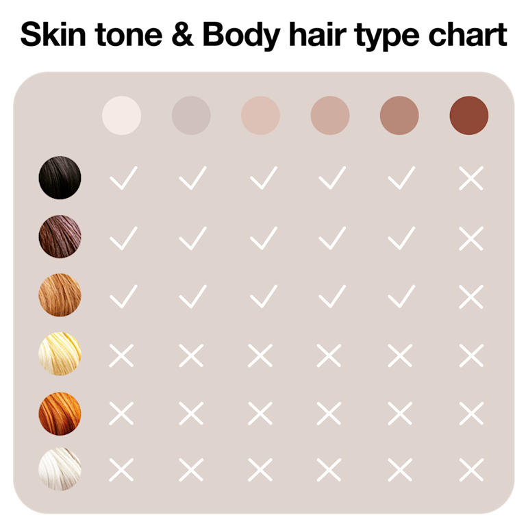 Optimal power for every body part with SkinPro (SensoAdapt™)—that automatically and continuously adapts to your skin tone.